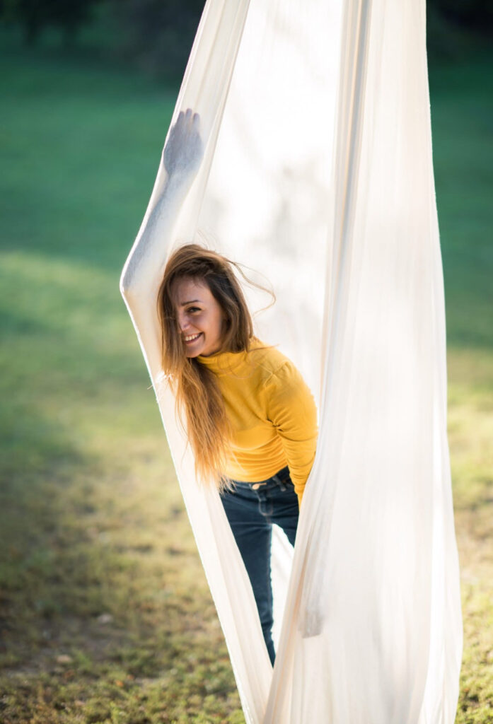 Als Lehrerin für Vinyasa und Aerial-Silk ist es mein Herzensweg, dich in deinem Körperbewusstsein und deiner Selbstentfaltung zu stärken.